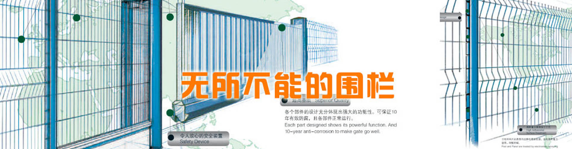 河北思固爾圍欄設(shè)施有限公司致力于專業(yè)的場地防護(hù)產(chǎn)品的研發(fā)與生產(chǎn),為全球客戶提供優(yōu)質(zhì)先進(jìn)的金屬圍欄、全鋼結(jié)構(gòu)大門和其他防護(hù)產(chǎn)品及服務(wù)。思固爾圍欄以一種目前市場上成熟的設(shè)計(jì)理念將立柱與焊網(wǎng)結(jié)合在一起,可以應(yīng)廣大客戶的要求提供理想的解決方案。公司于2002年通過ISO9001質(zhì)量管理體系認(rèn)證;2004年被評(píng)為項(xiàng)目建設(shè)先進(jìn)單位,信用優(yōu)良企業(yè),科技進(jìn)步先進(jìn)單位;2006年底公司取得了自營出口權(quán);2006年5月10日思固爾圍欄獲得中華人民共和國國家知識(shí)產(chǎn)權(quán)局頒發(fā)的實(shí)用新型專利證書目前,公司產(chǎn)品銷售網(wǎng)絡(luò)已遍及新疆、黑龍江、遼寧、江蘇、內(nèi)蒙古、海南、廣西、廣東、湖南、湖北、上海、福建、浙江、河南、北京等全國各地,并出口至加拿大、烏克蘭、伊朗、新西蘭、泰國、俄羅斯、南非、印度、巴基斯坦、韓國等30多個(gè)國家和地區(qū)。今天的思固爾已發(fā)展成集研發(fā)、設(shè)計(jì)、制造、貿(mào)易為一體的綜合性實(shí)體公司。思固爾人一如既往地秉承之前的創(chuàng)業(yè)精神,引進(jìn)與運(yùn)用現(xiàn)代的管理模式,迎合未來的市場需求,竭力滿足不同客戶的需求,力爭早日把思固爾打造成中國的民族品牌!-----------------------------------------...